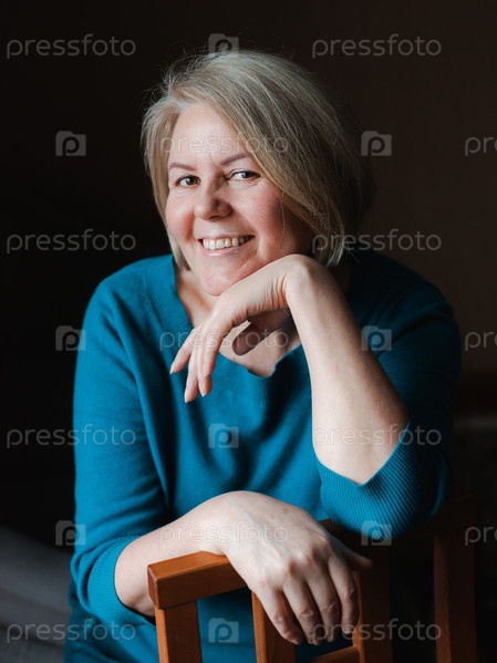 Портрет пожилой красивой пенсионерки на темном фоне