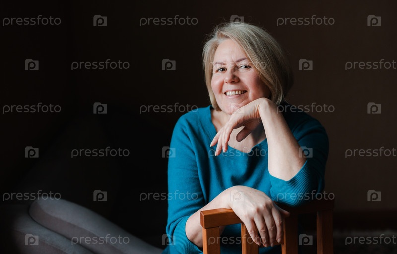 Портрет пожилой красивой пенсионерки на темном фоне