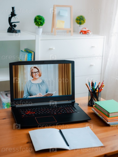 Учительница читает лекцию на вебинаре онлайн-курса Дистанционное онлайн-обучение. Домашнее дистанционное обучение