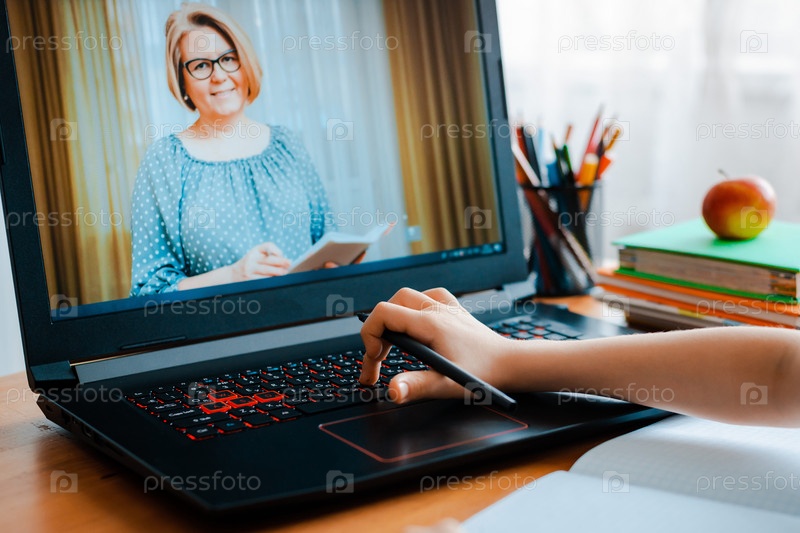 Дистанционное обучение онлайн образование. Школьник учится дома и делает домашнее задание. Домашнее дистанционное обучение