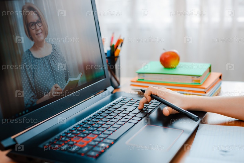 Дистанционное обучение онлайн образование. Школьник учится дома и делает домашнее задание. Домашнее дистанционное обучение