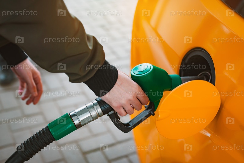 Неузнаваемый мужчина заправляет машину бензином на заправке. Концепция высоких цен на бензин