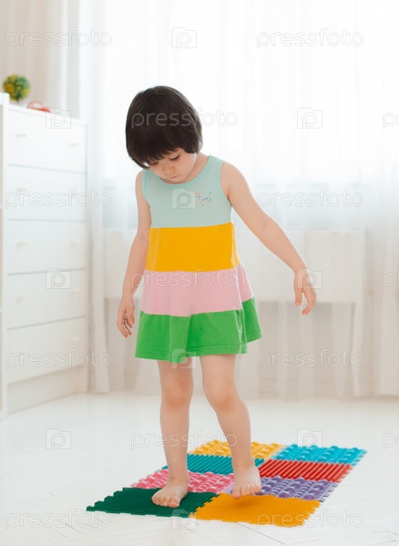 Малыш на коврике для массажа ног. Упражнения для ног на ортопедическом массажном ковре. профилактика плоскостопия и вальгусной деформации стопы