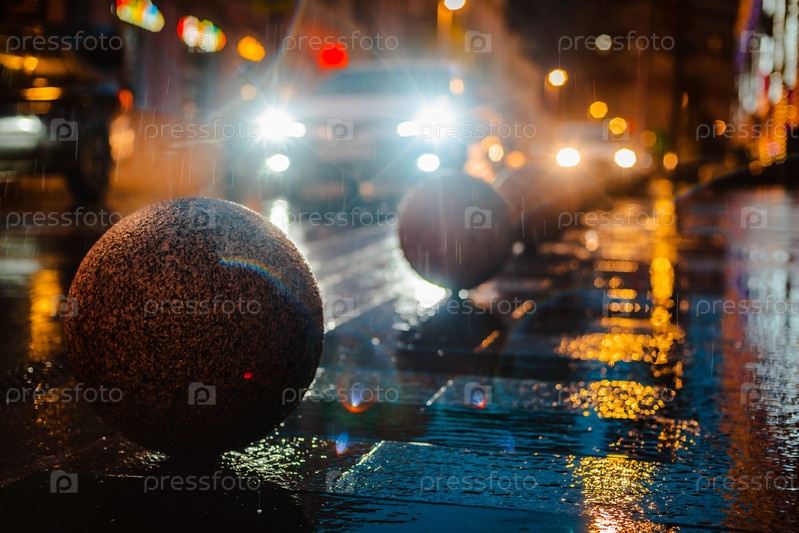 Мокрый ночной город улица дождь Боке отражение яркие разноцветные огни лужи тротуар Автомобиль