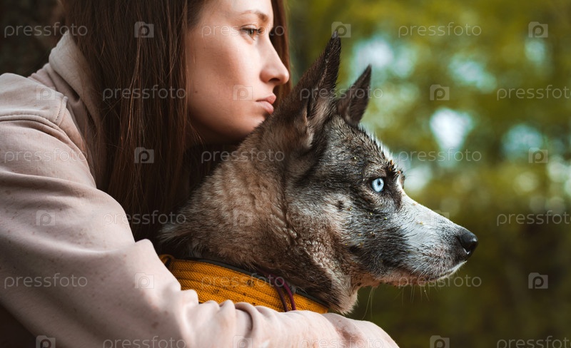 Выгульщик женского пола с домашним животным, гуляющим на природе у реки
