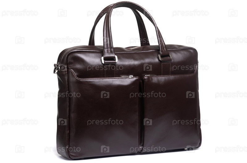 Дорогой элегантный мужской портфель на белом фоне