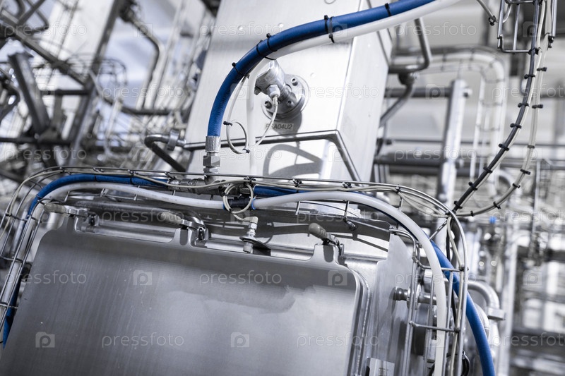 Хромированные трубы и синий шланг. Промышленный фон