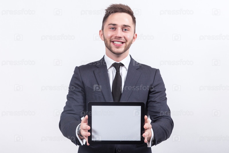 Изображение привлекательного бизнесмена с планшетным компьютером