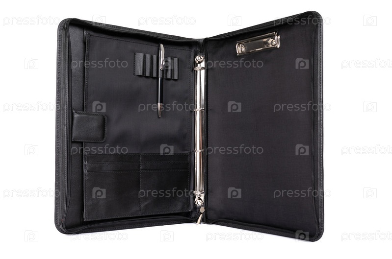 Офисная кожаная папка для ценных бумаг на белом фоне