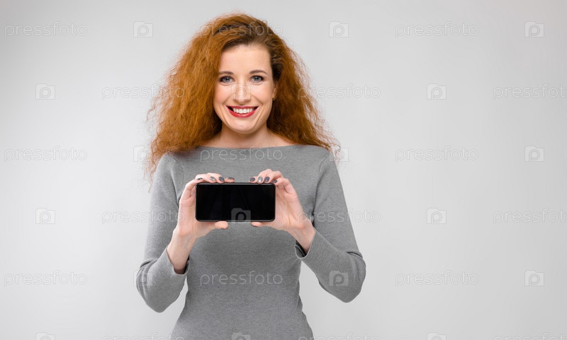 Молодая женщина представляет телефон