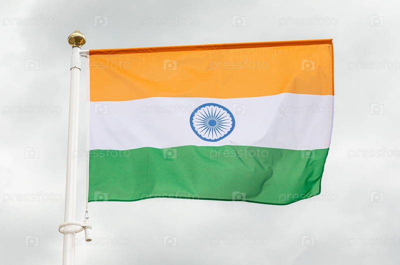 Флаг Индии против облачного белого неба