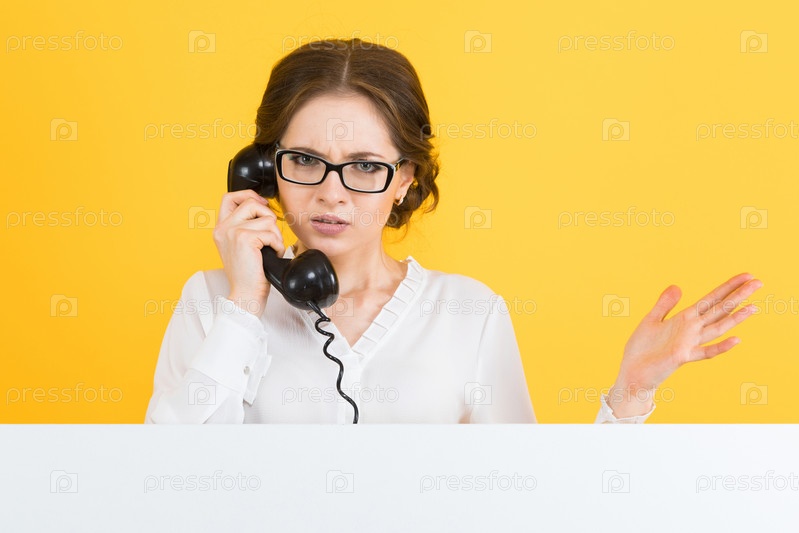 Кавказская брюнетка привлекательная деловая женщина в формальном платье с пустой вывеской, стоящая в офисе и отворачивающаяся, показывая знак, звонит клиенту, озадачен, заинтересован, смущен, грустен