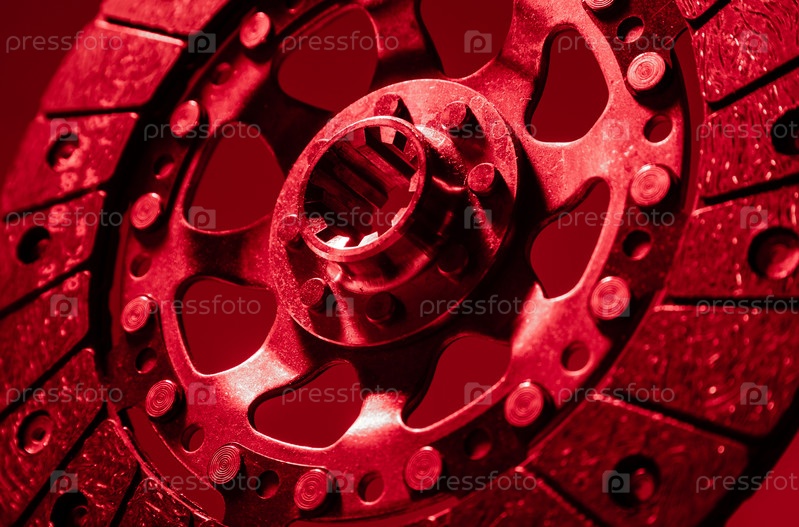 Крупный план диска сцепления и корзины на темном фоне