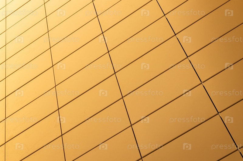 Вид с земли на плиточную стену теплого желтого цвета