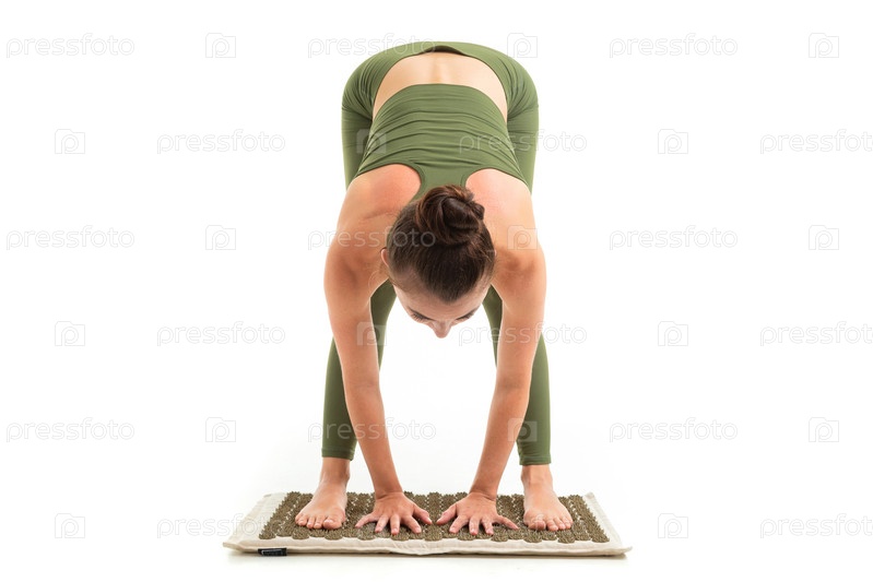 Красивая гибкая женщина, занимающаяся йогой на белом фоне