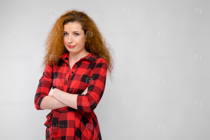 Портрет красивой рыжей расстроенной разочарованной грустной молодой женщины на сером фоне