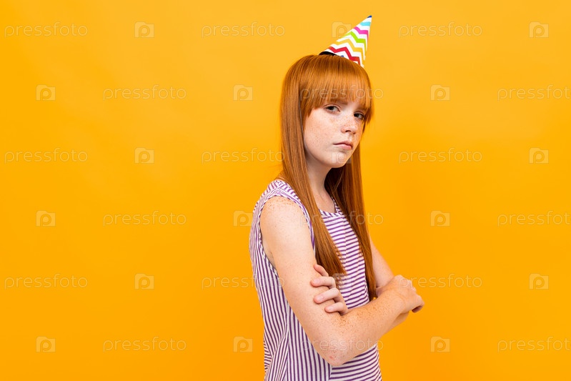 Все забыли о дне рождения красивой кавказской девушки, картинка на желтом фоне