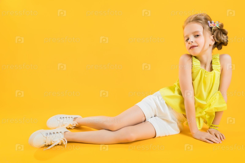 Портрет девушки в белых шортах и желтом топике