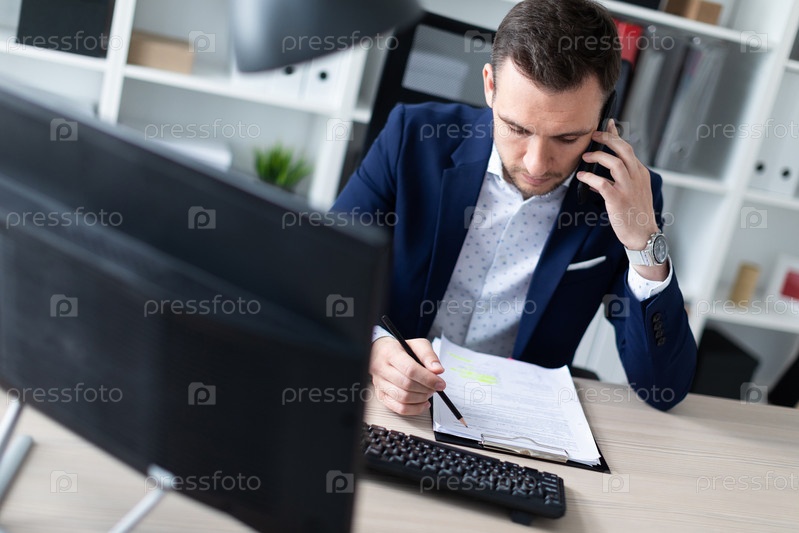 Молодой человек в синем деловом костюме и светлой рубашке. Красивый молодой человек с щетиной на лице. фото с глубиной резкости
