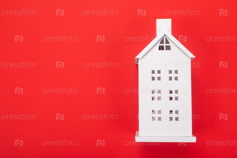 Белая модель дома на красном фоне