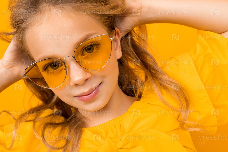 Симпатичная маленькая девочка в очках улыбается на белом фоне