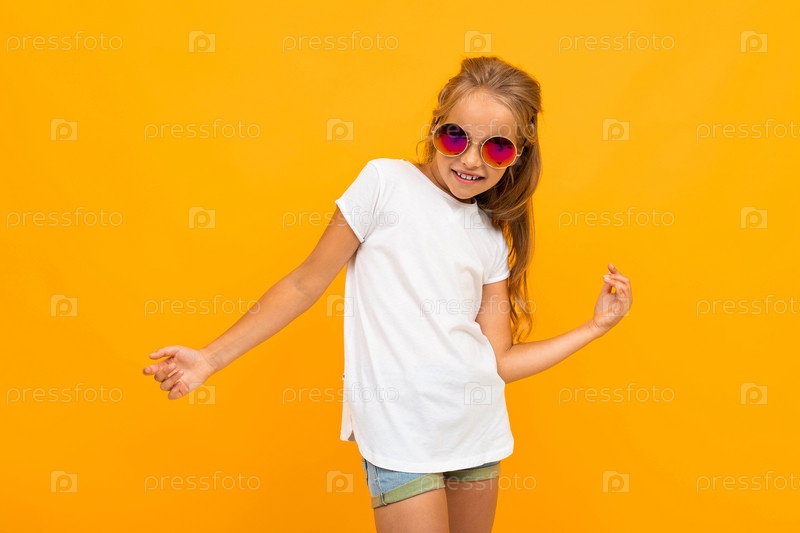 Красивая девушка с длинными волосами улыбается, изображение на желтом фоне