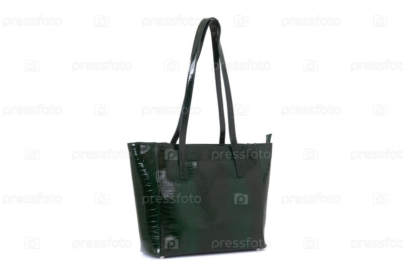 Элегантная зеленая женская кожаная сумка на белом фоне