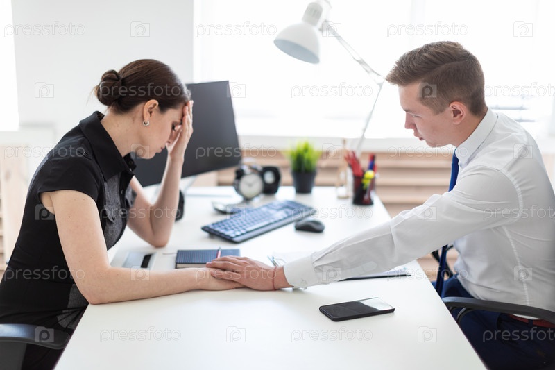 Красивая молодая девушка и молодой человек, работающий в ярком офисе. У них деловая одежда. фото с глубиной резкости