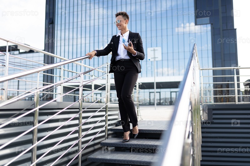 Молодая красивая деловая женщина позирует на фоне современного здания