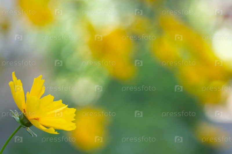 Желтый цветок, мягкий фокус и размытый фон. Естественный несфокусированный цветок в саду в качестве фона