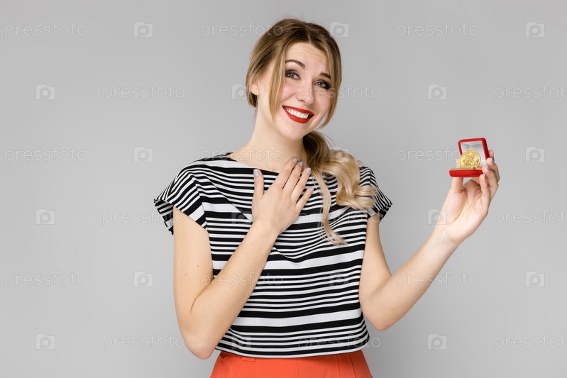Возбужденная женщина с подарочной коробкой