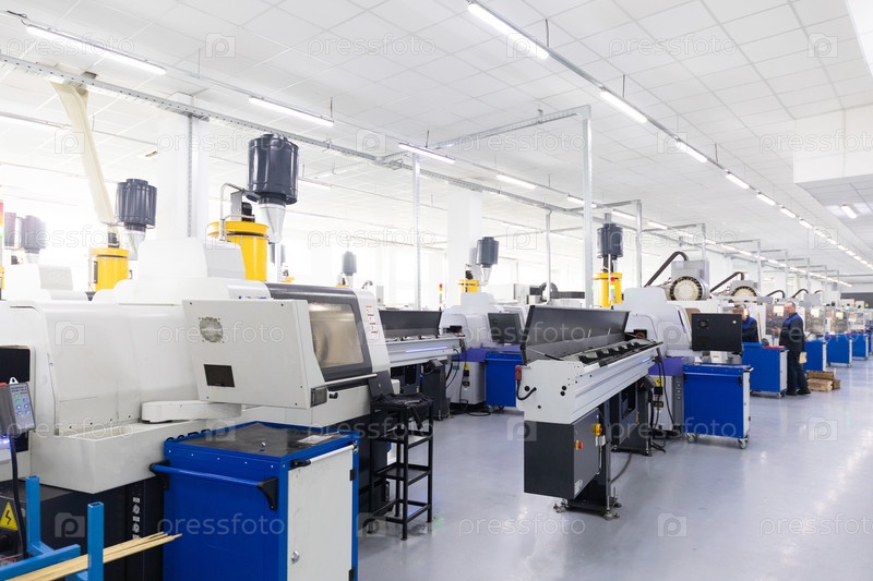 Внутренний снимок линии по производству металлических деталей на современном заводе