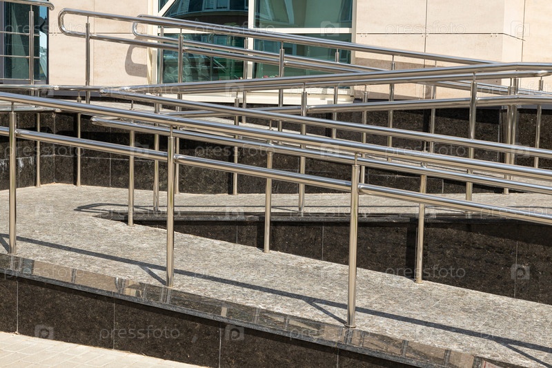 Цементная рампа со стальными поручнями для перевозки инвалидов-колясочников в магазин