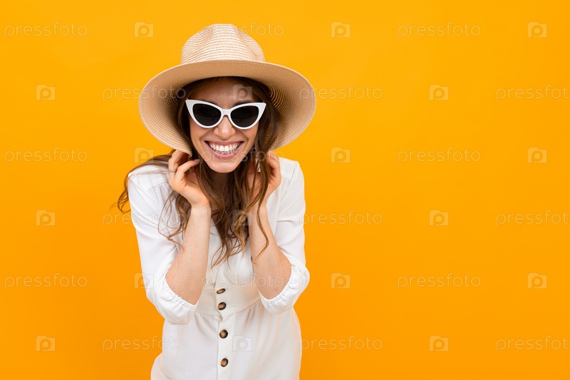 Женщина средних лет с улыбкой смотрит в камеру на фоне желтой стены