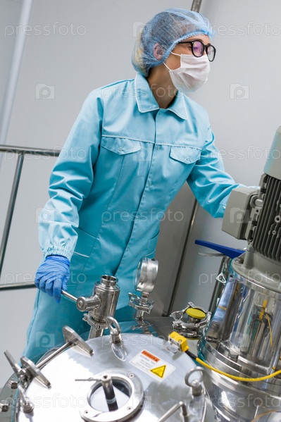 Оператор проверяет оборудование для производства стерильных