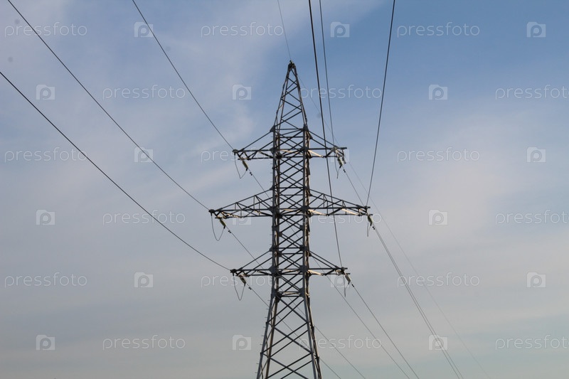 Высоковольтная башня на фоне голубого неба с местом для текста