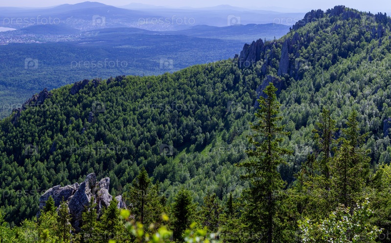 Вид на горы. Горная долина летом. Национальный парк Таганай. Россия