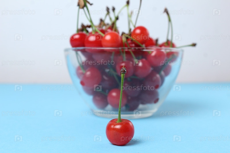 Красная вишня вишня крупным планом на заднем фоне чаша с вишней. Сезонные ягоды витамины приносят пользу, питательные ягоды увеличивают содержание железа