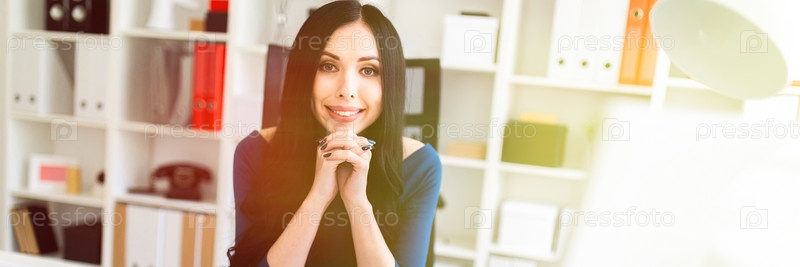 В кабинете за столом сидит молодая девушка