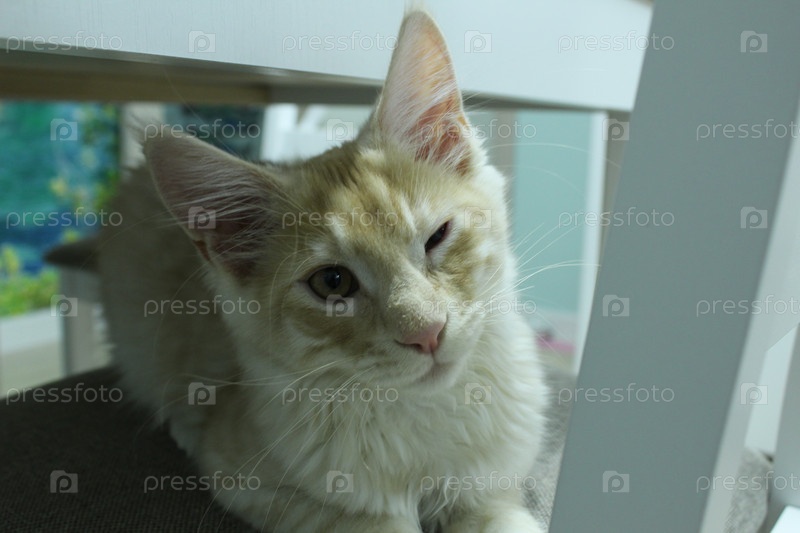 Большой рыжий кот породы Мейкун с больным подбитым глазом. больные животные лечение глаз домашние животные