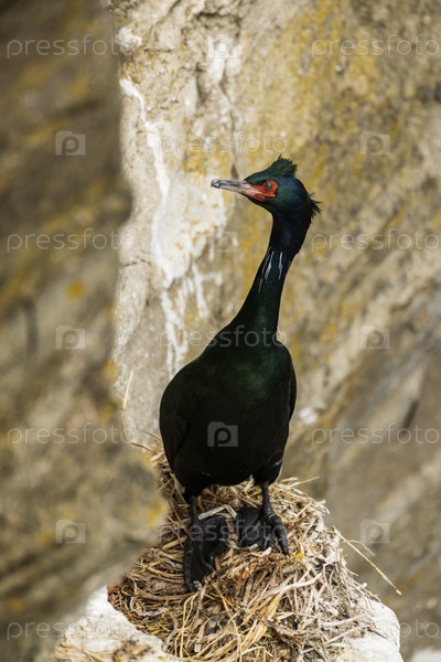 Краснолицый баклан в гнезде