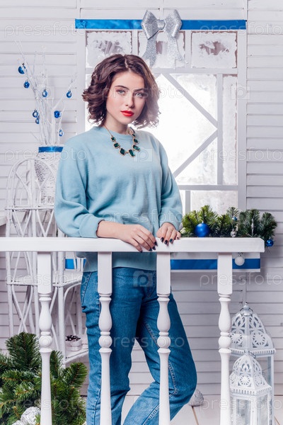 Девушка на крыльце новый год