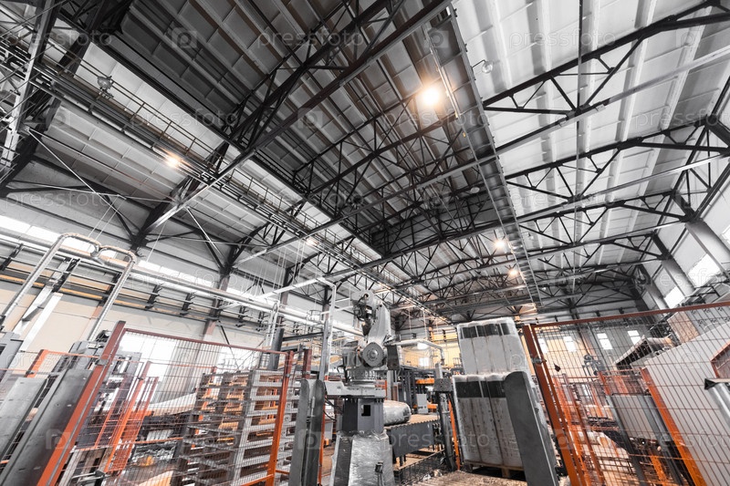 Современное действующее заводское оборудование, производящее стекловолокно с поддонами на фоне концепции металлообрабатывающего цеха машин тяжелой промышленности