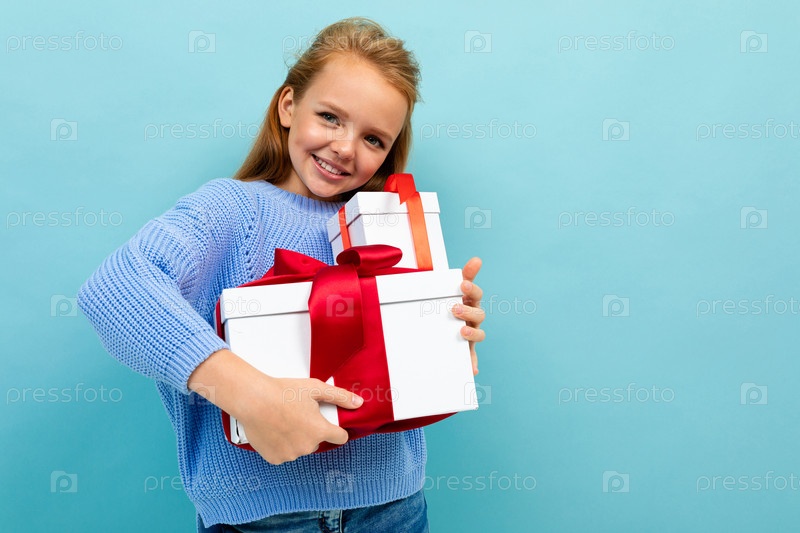 Концепция дня святого валентина. улыбающаяся девушка с подарками с копией пространства