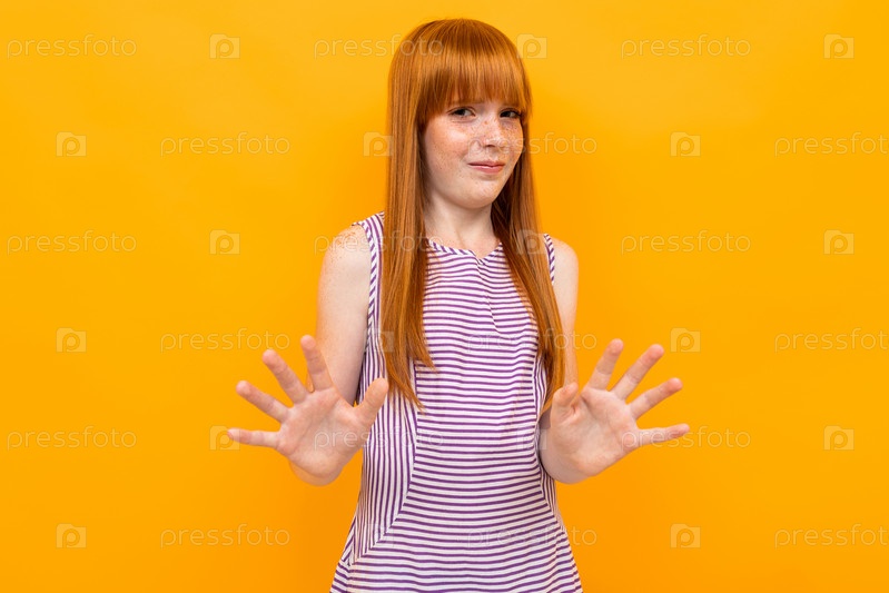 Симпатичная молодая девушка в красном платье и большой красной шляпе не любит что-то изолированное на белом фоне
