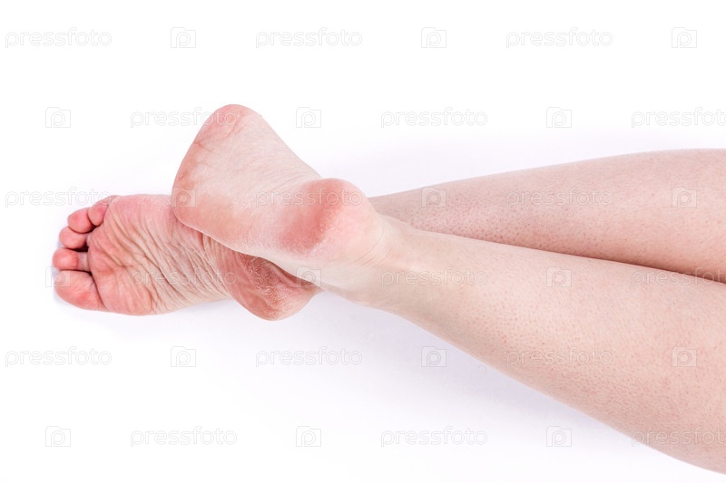 Сухая обезвоженная кожа на пятках женских ног с мозолями