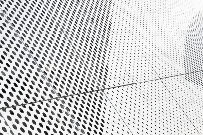 Диагональный вид металлических решеток и круглых отверстий в металлической поверхности, перфорированные панели крупным планом