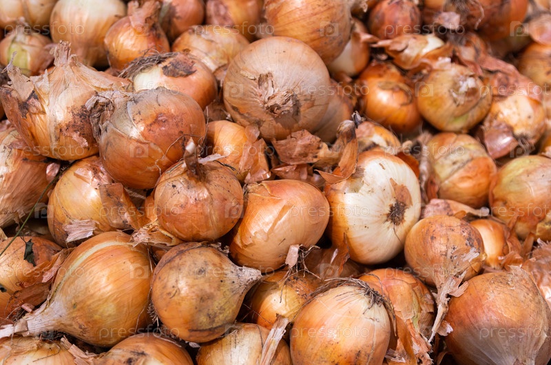Куча коричневого органического лука в шелухе, может использоваться для фона