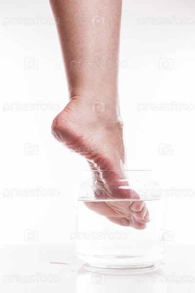 Нога девушки с сухой и грубой кожей и мозолями на пятках moi