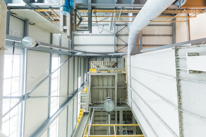 Вид сверху вниз на современное действующее предприятие с серыми трубами и лестницами, концепция металлообрабатывающей мастерской тяжелой промышленности
